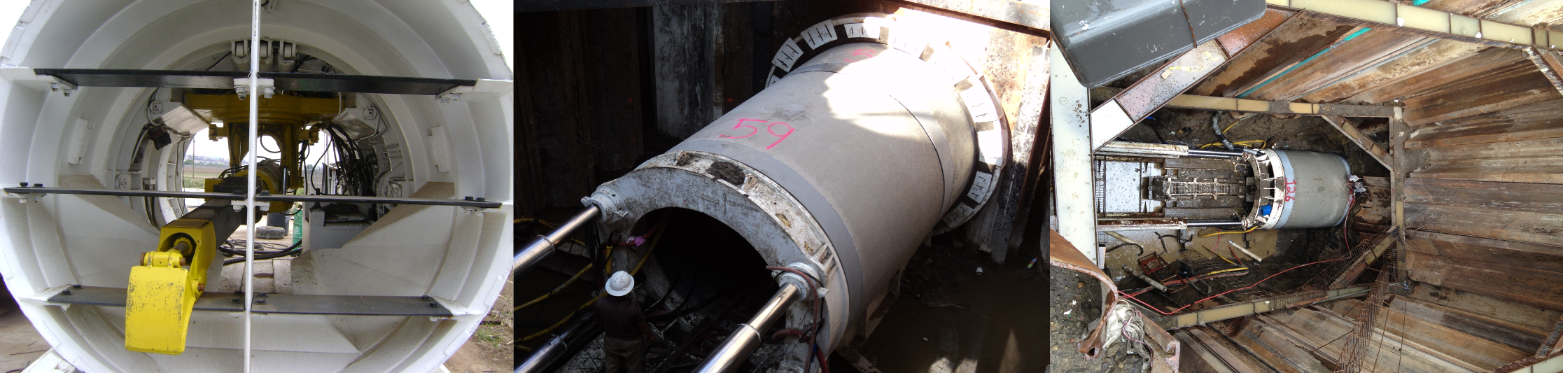 instalación de tubería de concreto reforzado en diámetros desde 1.52 hasta 2.44 metros, con equipos para el empuje de la